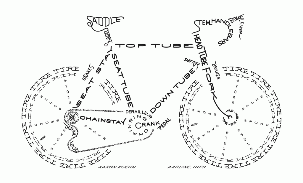 To provide a break from some of my rather _heavy_ testing posts recently, here’s a cool bike graphic that came across my desk, with the component names in text…a very creative piece of work from Aaron Kuehn.